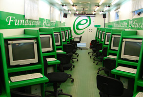 "El programa Educando Sobre Ruedas consiste en el dictado de cursos de computación en el marco de un aula completa de informática, montada en un semirremolque y equipada con recursos didácticos e informáticos, que recorre los destinos más apartados del país para integrar social y educativamente a las comunidades alejadas geográficamente. Esta iniciativa proporciona una asistencia real a las zonas que por su carácter de "frontera" están desprovistas de este tipo de facilidades. Nuestro "Aula Móvil", el primero en su tipo de la Argentina, tiene capacidad para que grupos de 16 alumnos puedan participar de cada curso, accediendo a recursos modernos y actualizados para capacitarse en el uso de las nuevas tecnologías. De este modo, el número de beneficiarios del programa es notoriamente mayor comparado con la cantidad de egresados de cursos tradicionales, ya que el aula constituye un espacio de educación permanente que es aprovechado para una capacitación intensiva durante los cuatro meses de estadía en cada localidad. "